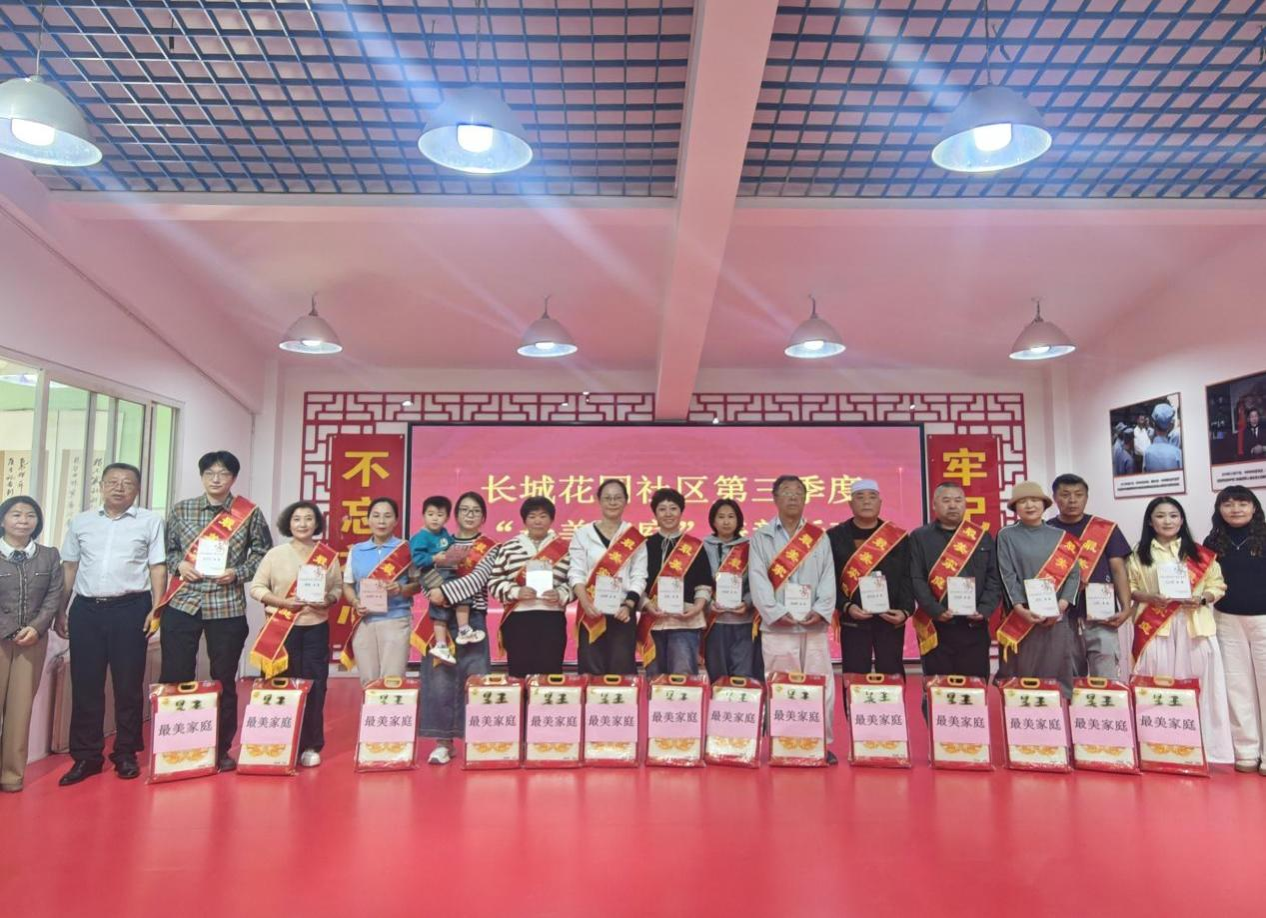活动现场暖意融融,不仅有文明榜样的隆重表彰更有与精彩的文艺展演。“家是最小国,国是千万家”,经居民自荐、邻里推荐及社区筛选,共14户家庭获得长城花园社区第三季度“最美家庭”荣誉称号,这些家庭以良好家风、邻里互助的实际行动,诠释了社区文明的内涵,为居民树立了学习榜样,也让“最美”力量在社区传递。