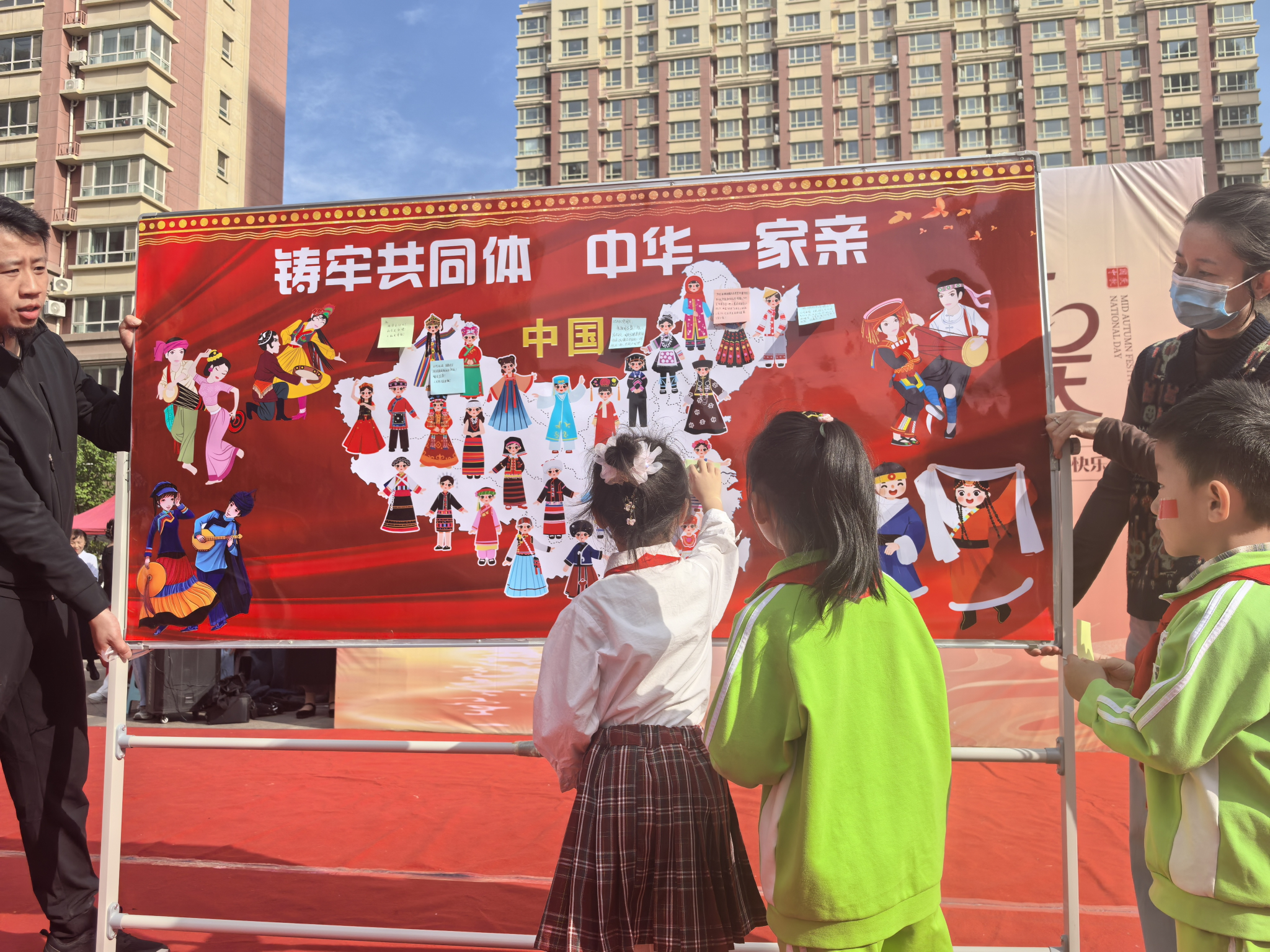 文艺汇演率先拉开节日序幕,口琴演奏《歌唱祖国》《走向复兴》琴音穿风而过,观众们不自觉跟着轻唱,爱国的情愫在秋光里悄然涌动。“笔墨祝福祖国”的环节,老人以苍劲笔锋书下祈愿,孩童用蜡笔绘出五星与明月,小小的卡片层层叠叠,汇聚成一颗炽热的“爱国同心”,定格下民族团结的瞬间。