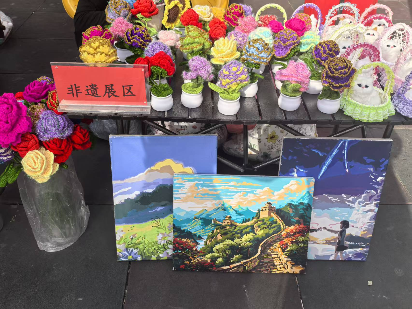 非遗雅集承文脉,各族巧手绘团圆。广场一隅的非遗体验区,似一幅流动的传统文化长卷。剪纸台前,红纸在非遗传承人的指尖翻飞,回族马阿姨带着孙女轻折慢剪;糖画摊位前,融化的糖浆如银丝般流淌,孩童踮脚凝望,看师傅勾勒出灯笼、仙鹤的灵动造型。居民在一折一剪、一捏一画间,触摸中华文脉的厚重,也让民族情谊在文化共鸣中悄然升温。