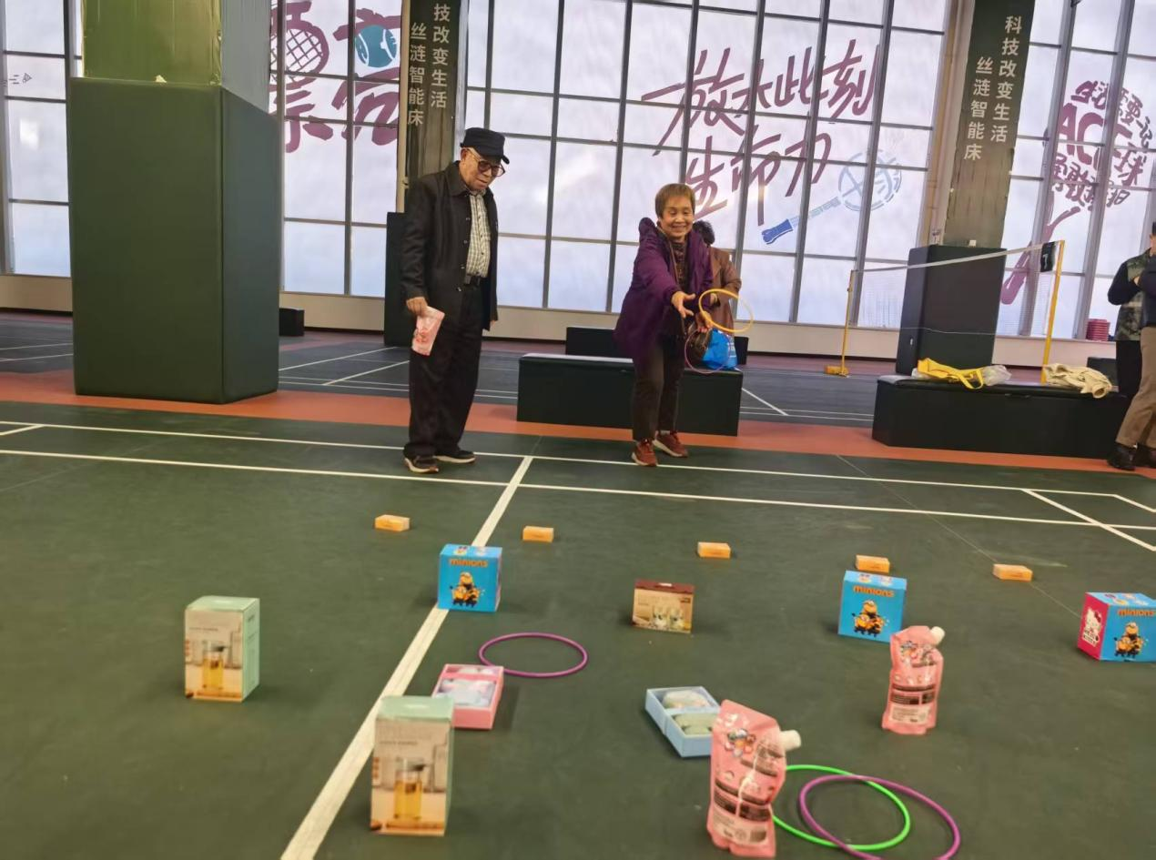 孝老爱亲,是深植于中华民族血脉中的精神根脉,运动会的项目设置充分贴合老年人的身心特点,主要注重参与感与趣味性。“套圈夺宝”区前早已排起了长队,五颜六色的塑料圈在老人们手中翻飞,瞄准心仪的日常用品稳稳抛出。有的老人凝神聚力、一击即中,引来周围阵阵欢呼;有的虽偶有失手,却在邻里的鼓励声中笑着再次尝试,每一次套中都化作孩童般的雀跃。“这个项目既不费力气,又能考验眼力和手劲,太适合我们老年人了!”刚套中一袋洗衣液的李阿姨捧着奖品,笑得合不拢嘴。另一边的“纸杯叠叠乐”项目同样精彩纷呈,成为展现默契与技巧的舞台。叔叔阿姨们两人一组,在30秒内合力将纸杯堆叠成塔,既要控制力度避免倾倒,又要默契配合提升速度。有的组合有条不紊、层层递进,快速搭建起挺拔的“纸杯塔”;有的虽中途失误导致纸杯散落,却立刻重整旗鼓、相互鼓劲,现场充满了欢声笑语。志愿者们在旁耐心指导,不时为老人们加油喝彩,小小的纸杯成为连接邻里情感的纽带,让陌生感在协作中悄然消融。“这活动真好!能活动筋骨,还能和大家一起热闹热闹,感觉自己也年轻了不少!”70岁的陶叔叔刚结束“套圈夺宝”项目,便忍不住向身边人分享喜悦,脸上的笑容格外灿烂。整场运动会始终洋溢着欢乐祥和的氛围,老人们相互鼓励、彼此喝彩,加油声、欢呼声与笑语声交织成动人的乐章。